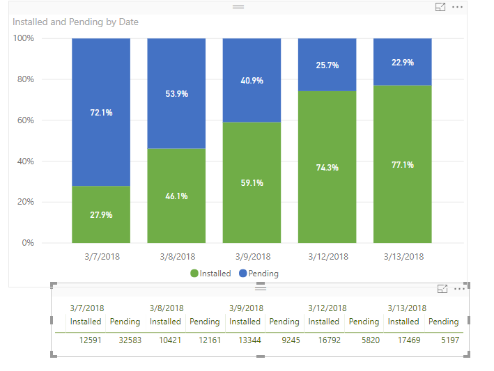 Hoping to find out if anyone has had luck replicating the excel 100% stacked bar chart in PowerBI?Ā The specific functionality of allowing the values to appear on the chart is something we would like to be able to continue to use.