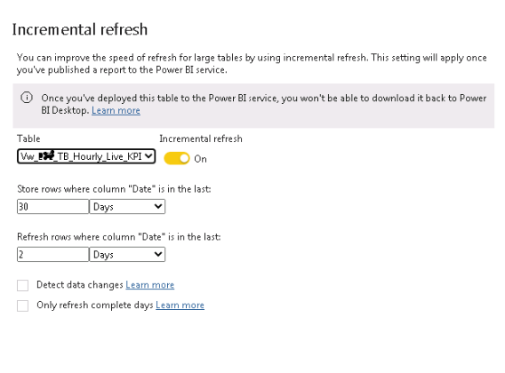 then I enabled the Incremental refresh and after publishing to PBI service and refresh from PBI service it shows again abnormality.My table is getting updated every hour below is the snap of my incremental refresh