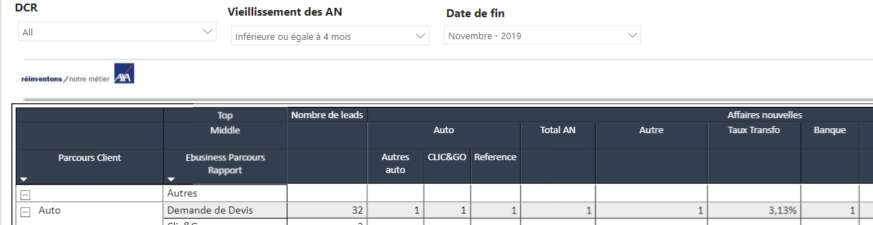 { "Affaires nouvelles", 2, "%Total", 9, "", 0 }