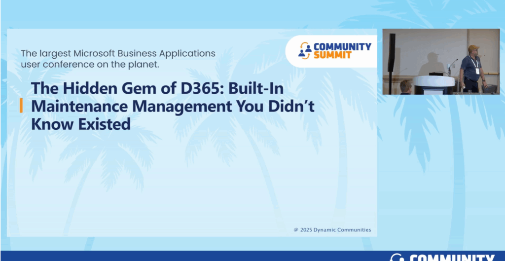 Session Overview: “Most organizations donāt realize that Dynamics 365 Supply Chain Management includes a full-featured CMMS, ready to support maintenance planning, asset tracking, and work…