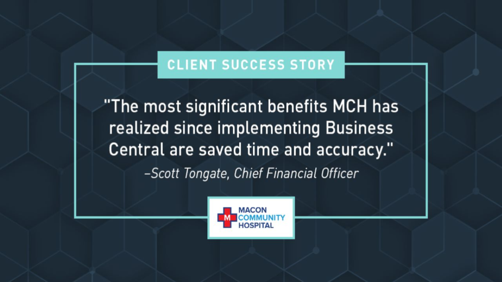 Macon Community Hospital (MCH) is a 25-bed critical access hospital that was unable to see the accurate financial state of the hospital, and collections had deteriorated to about 30 percent of charges. BKD helped replace their ERP system to get back on track. Read the full case study of how BKD helped MCH smoothly implement Microsoft Dynamics 365 Business Central to drive efficiencies.