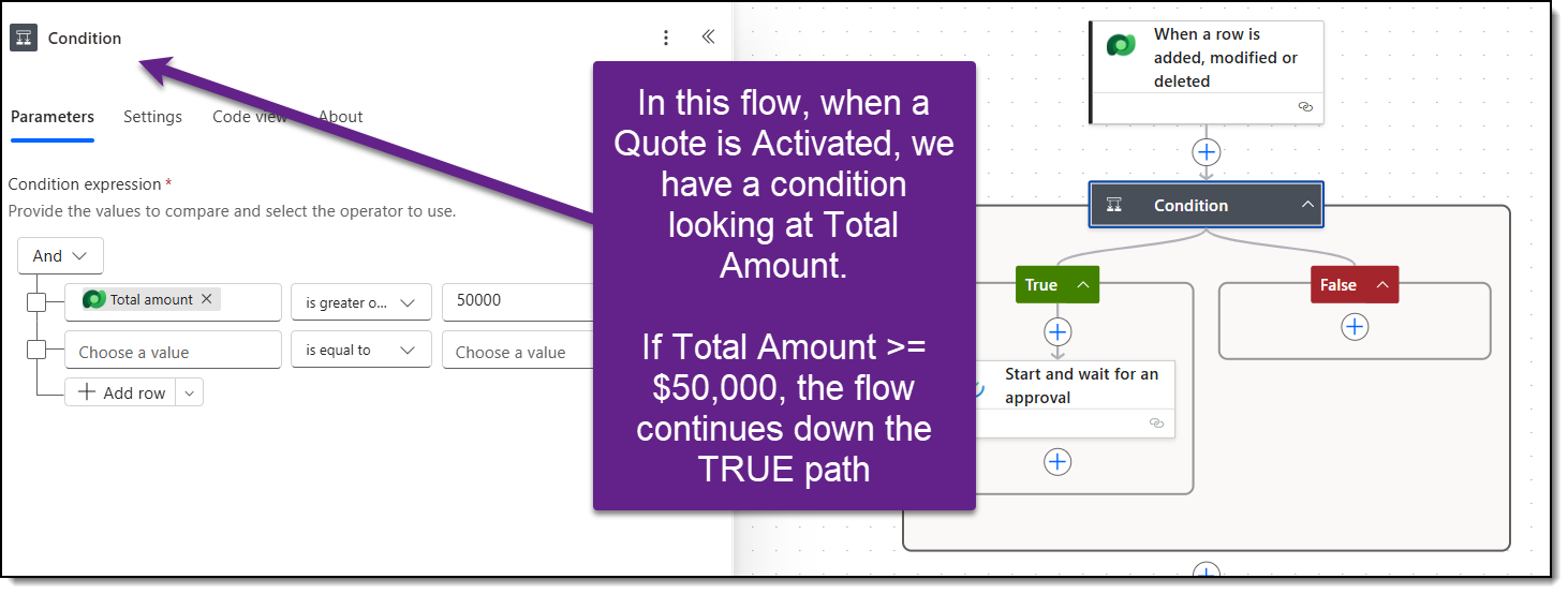 The condition action is best used when there is Yes/No logic. In my flows, I use it when I have an if/then/else scenario, such as āif the amount is less than $50,000, do (x), otherwise, do (y).ā