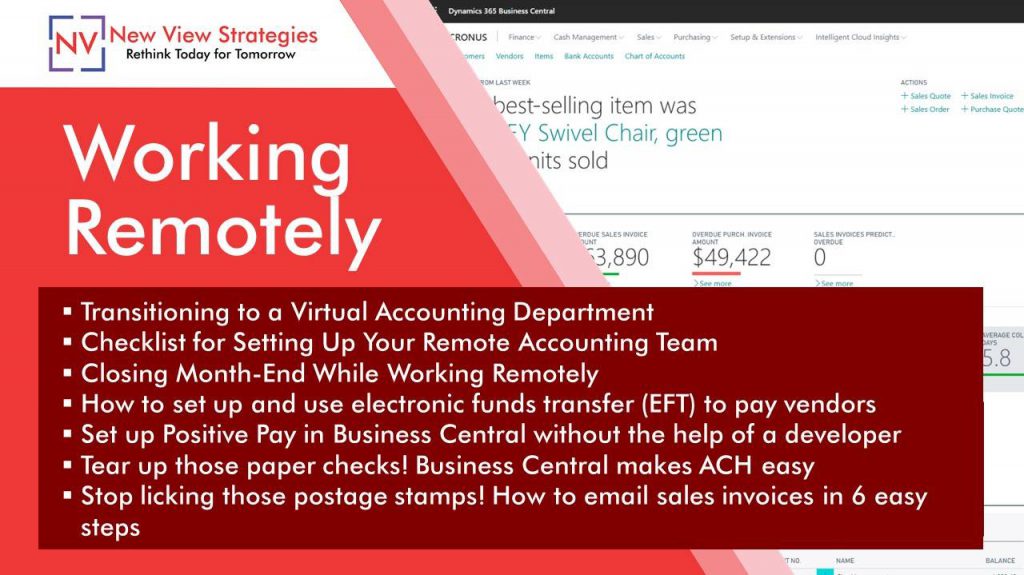 Adapting to working remotely? If you’re finding it a little bumpy, you’re far from alone. But, believe it or not, now is a great time to embrace technology to enable more efficient processes. And we’d like to help. We guarantee there are additional functions and features in your existing Microsoft Dynamics NAV / Dynamics 365 Business Central system you can take advantage of.