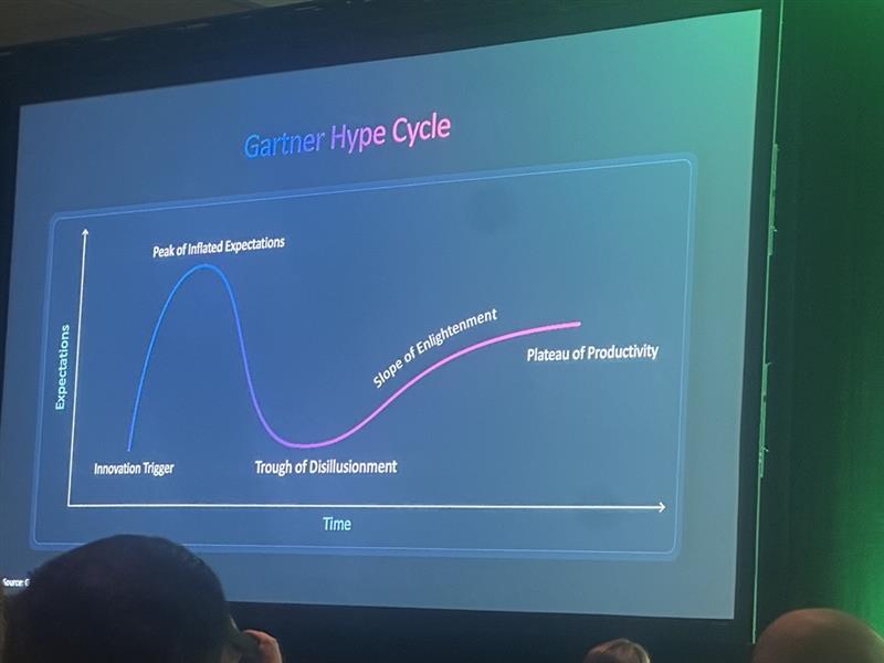 Referencing Gartnerās Hype Cycle, he noted that āEvery major technology goes through this. The key is to engage early, learn, and adapt.ā
